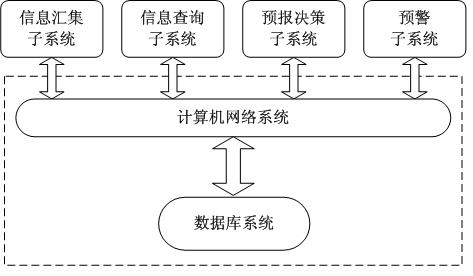 山洪災害防治信息匯集與預警平臺是山洪災害監測預警系統數據信息處理和服務的核心,主要由計算機網絡、數據庫、信息匯集、信息查詢、預報決策、預警等部分組成。